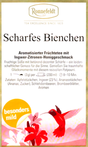 Apfelstückchen, Ingwer (23 %), Ananasstückchen (Ananas, Zucker), Schlehdornbeeren, Brombeerblätter, Aromen