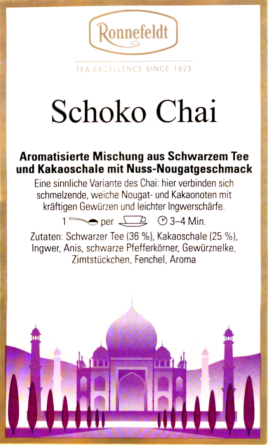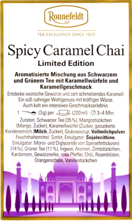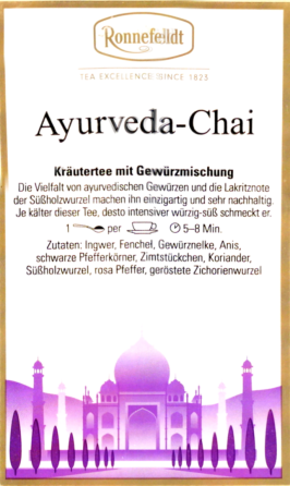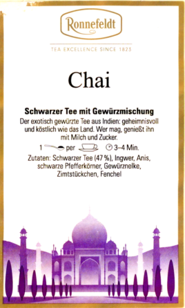 Chai ist in Indien das Nationalgetränk und wird dort Masala Chai genannt. Masala ist auf Hindi das Wort für Gewürz, Chai heißt ganz einfach Tee. Es gibt kein bestimmtes Rezept für Chai. Indische Familien mischen sich ihren feurig würzigen Chai aus Schwarzem Tee – mit Milch, Zucker und kräftigen und aromatischen Gewürzen wie Kardamom, Ingwer, Zimt, Nelken, Fenchel, Anis und Pfeffer selbst. Manche hüten dieses hauseigene Rezept wie ein Geheimnis. Ronnefeldt hat die interessantesten Chai-Kreationen für Sie zusammengestellt. Süßen Sie Ihren Chai außerdem mit unseren hochwertigen Zucker-Spezialitäten, Kandis und leckerem Honig.