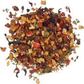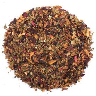 Hagebuttenschale, Apfel-, Birnenstückchen, Kokosraspel, Mangostückchen (Mango, Zucker), Orangenschale, Aromen, Basilikumkraut, Säuerungsmittel: Citronensäure,