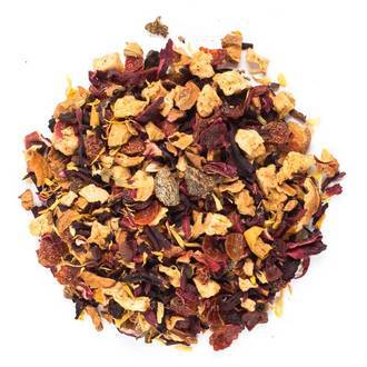 Pfefferminzblätter (8,7 %), Orangenschale (8,7 %), süße Brombeerblätter, Färberdistelblüten