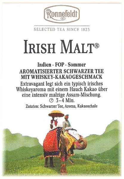 Extravagant legt sich ein typisch irisches Whiskeyaroma mit einem Hauch Kakao über eine intensiv malzige Assam-Mischung.