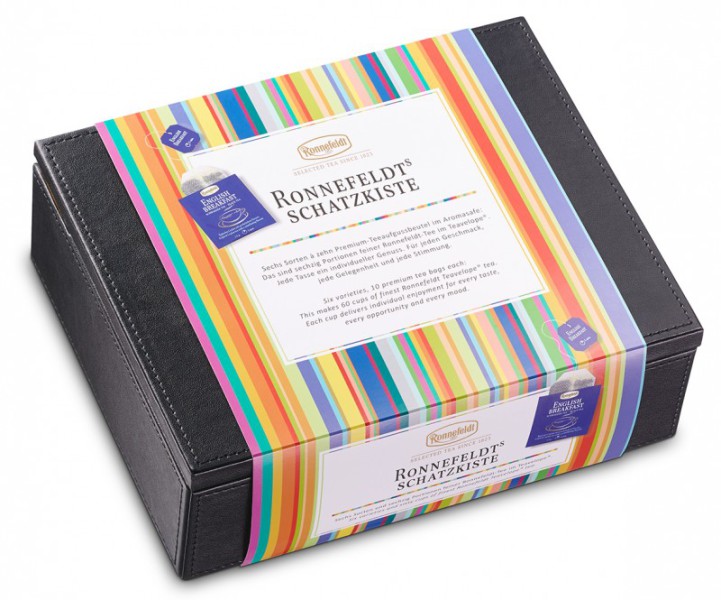 In diesem Kistchen sind viele Schätze für Teeliebhaber - sechs Sorten à 10 Teavelopes®. Die hochwertige Box wirkt wie eine Schmuckschatulle und ist aus Kunstleder gefertigt.