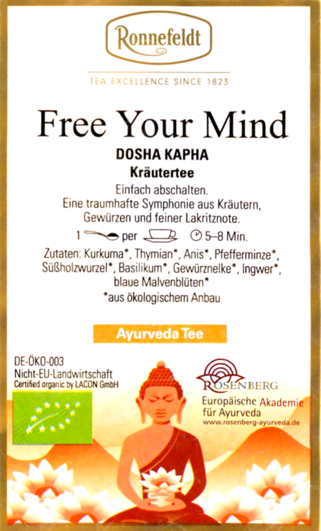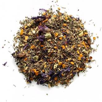 Kurkuma**, Thymian**, Anis**, Pfefferminze**, Süßholzwurzel**, Basilikum**, Gewürznelke**, Ingwer**, blaue Malvenblüten**