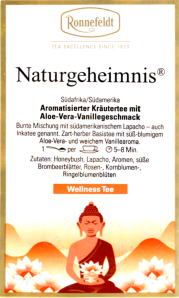 Bunte Mischung mit südamerikanischem Lapacho – auch Inkatee genannt. Zart-herber Basistee mit süß-blumigem Aloe-Vera- und weichem Vanillearoma.